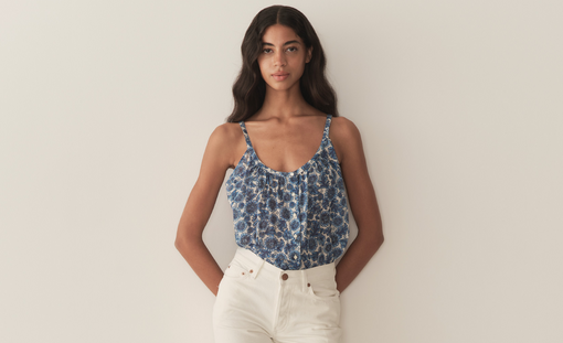A sweet nod to one of our earliest styles—the Marche Dress from our first collection—the Little Marche Top is crafted from a soft, lightweight organic cotton voile adorned with our Soleil Fleurit print. With a high V-neckline and voluminous sleeves, it fastens at the back with a button-and-loop closure.
